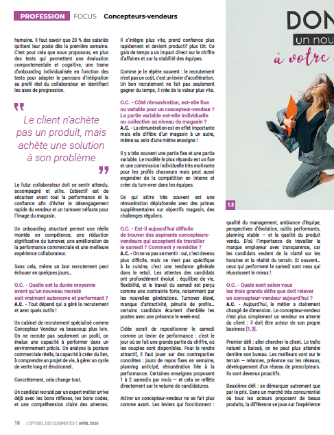 Merci à l'Officiel des Cuisinistes pour cette interview avec 14 questions sur le portrait d'un métier en première